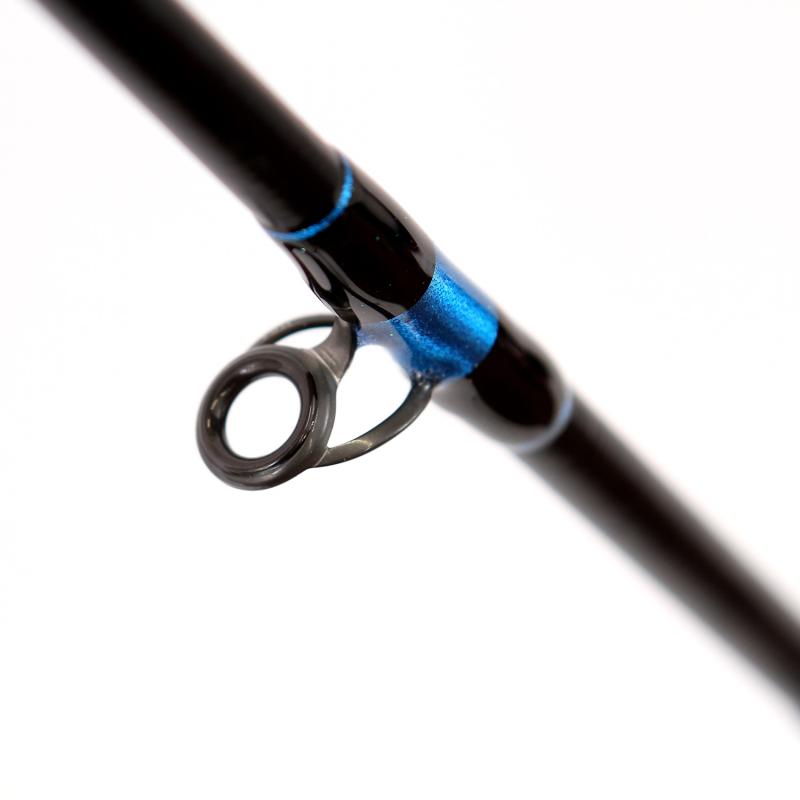 Componentistica al Top: anelli Sea Guide America, antiscivolo a squama di pesce e componentistica in alluminio. Fusto cavo in carbonio, garantite a vita.