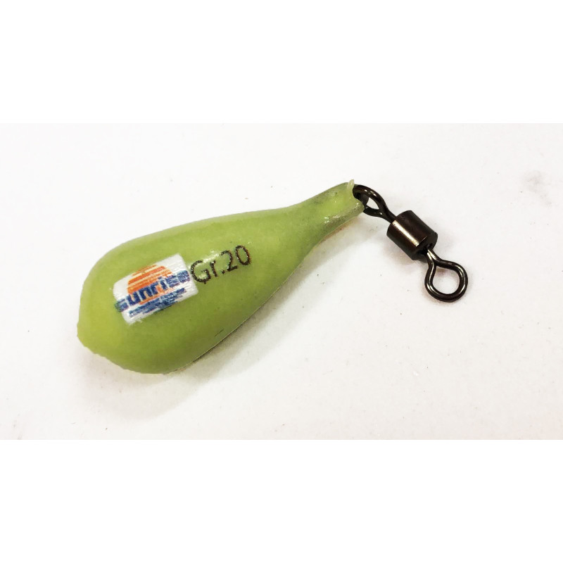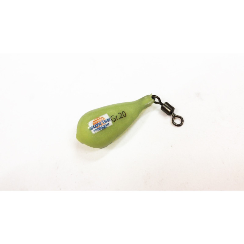 Piombo da 20gr. con girella incorporata, copertura in gomma fluorescente.