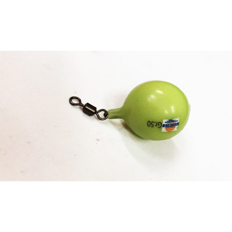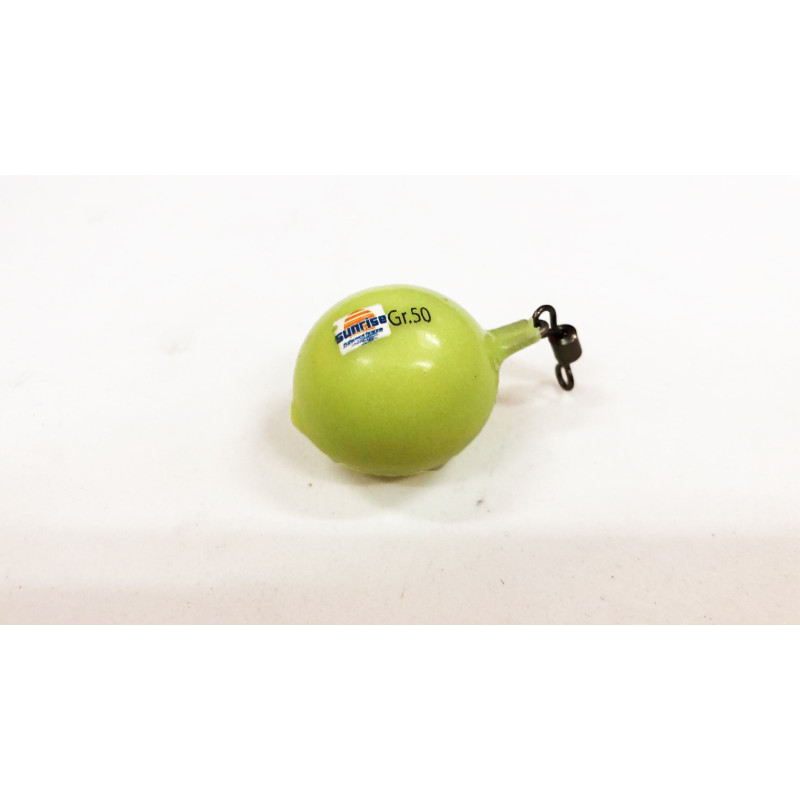 Piombo da 50gr. con girella incorporata, copertura in gomma fluorescente.