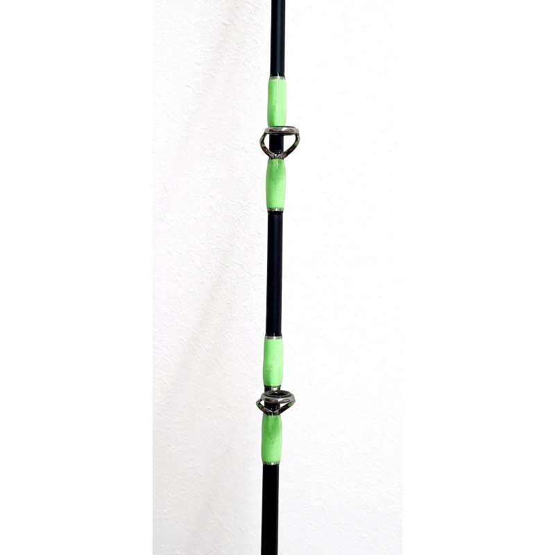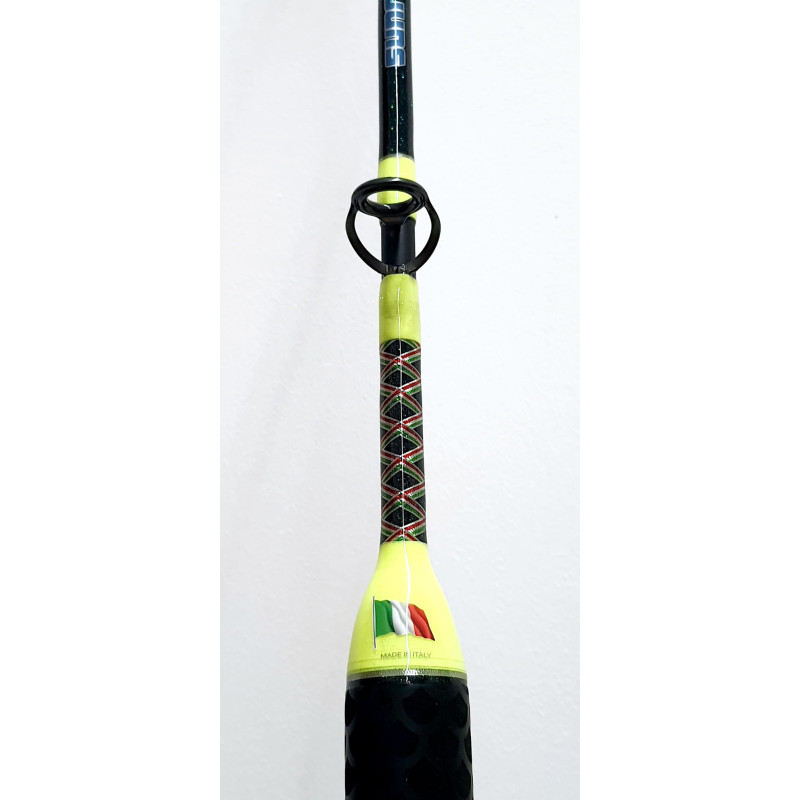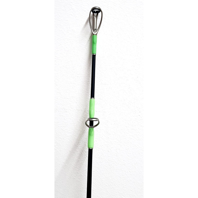 canna composta da fusto monopezzo in carbonio composito; fusto cavo con azione parabolico fast;