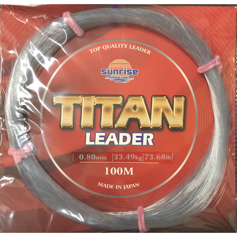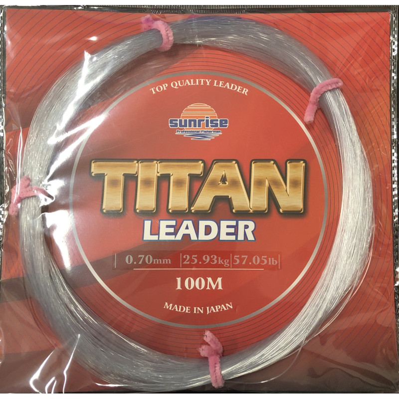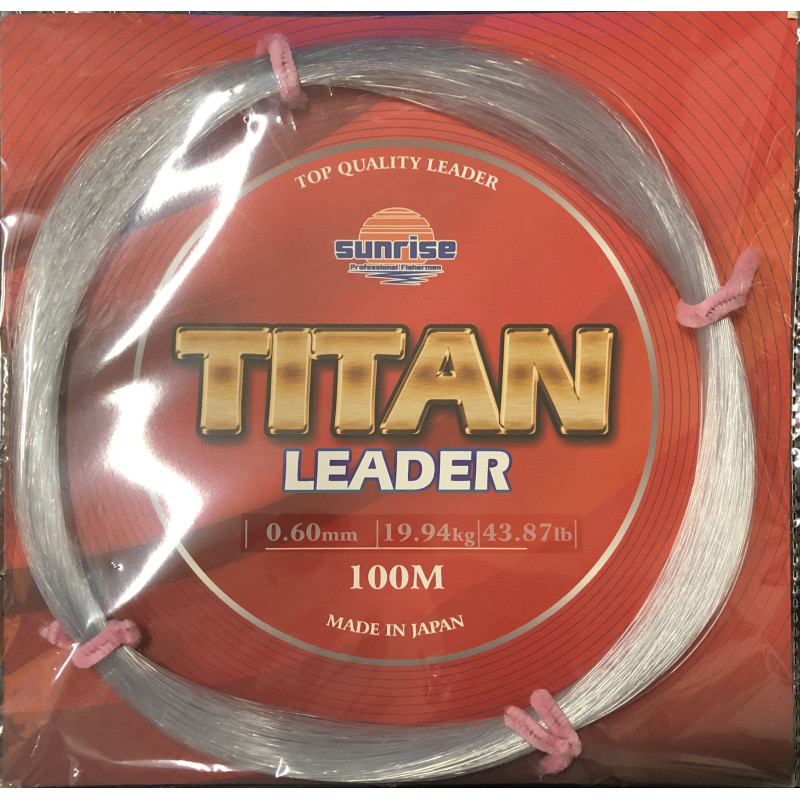 Titan Leader Sunrise costruito utilizzando la più alta qualità di polimeri oggi disponibili dall'industria giapponese. Il Leader costituito da una speciale mescola di nylon è uno dei materiali più importanti per i pescatori di traina e Big Game.