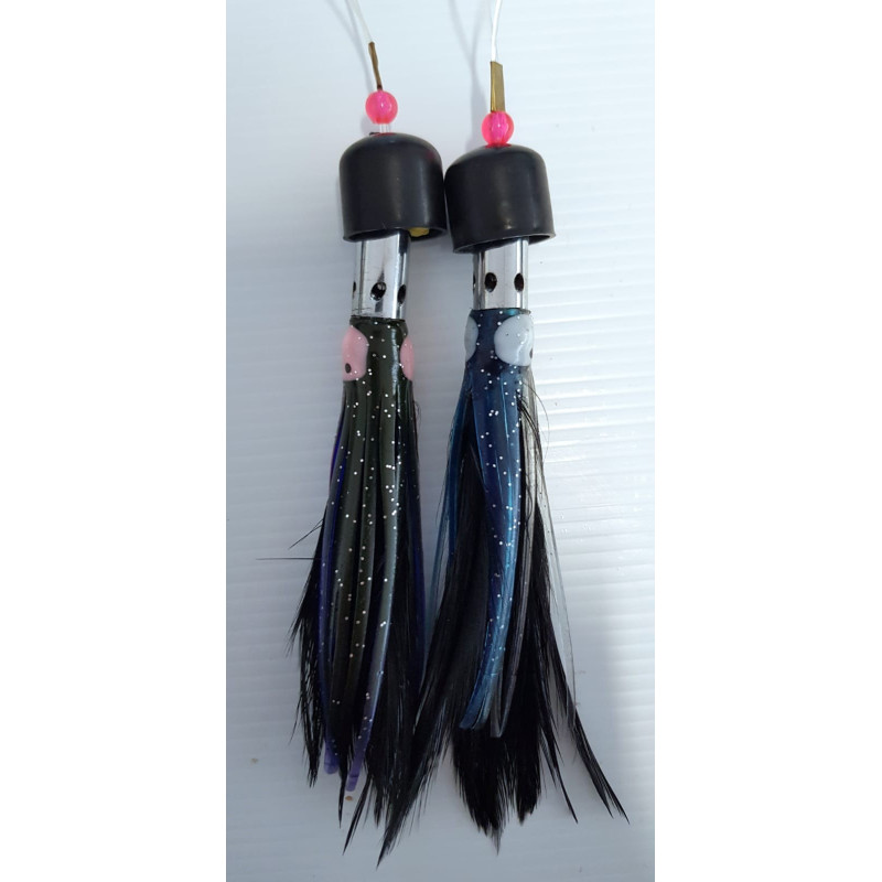 Piuma dalla Testa in Acciaio “proiettile” a cono, montate con Octopus e mylar.prodotte e Montate interamente a mano, con materiali di massima qualità.
