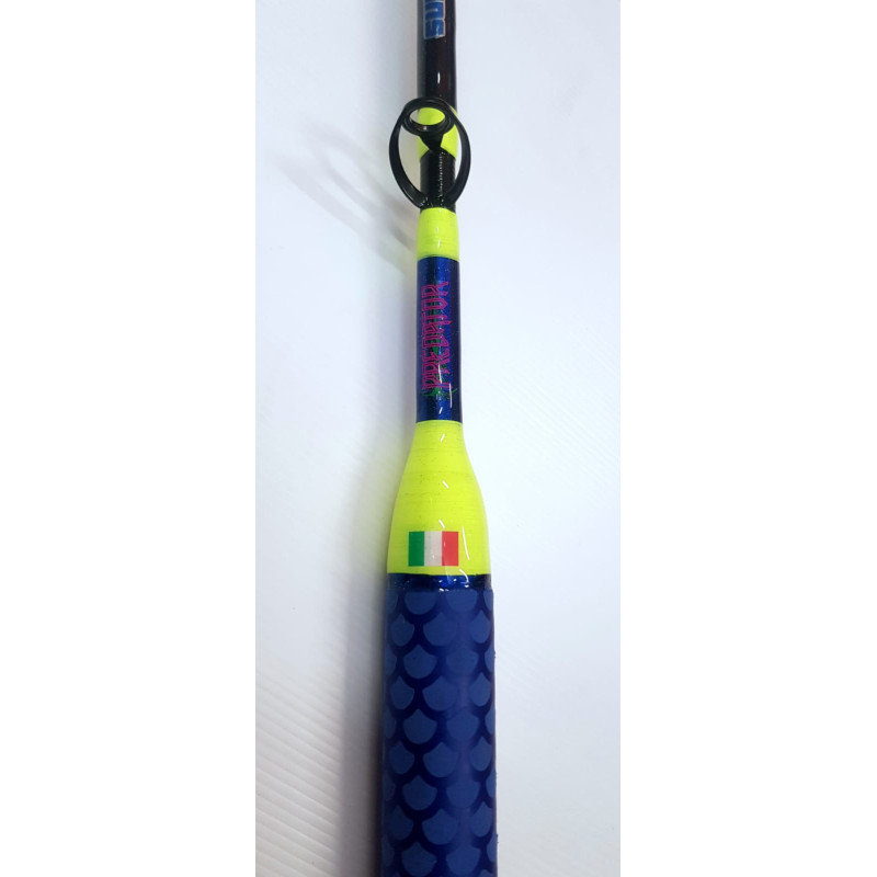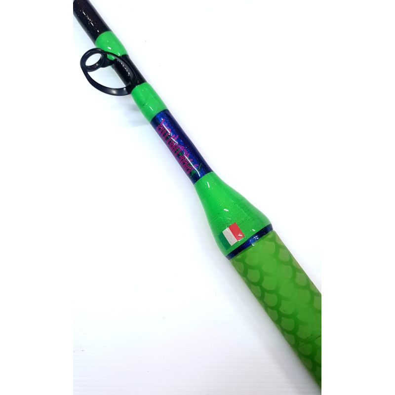In questa versione modello dedicato al DRIFTING al tonno rosso con manico in EVA rifinito con lo shrim wrap (squama di pesca).
